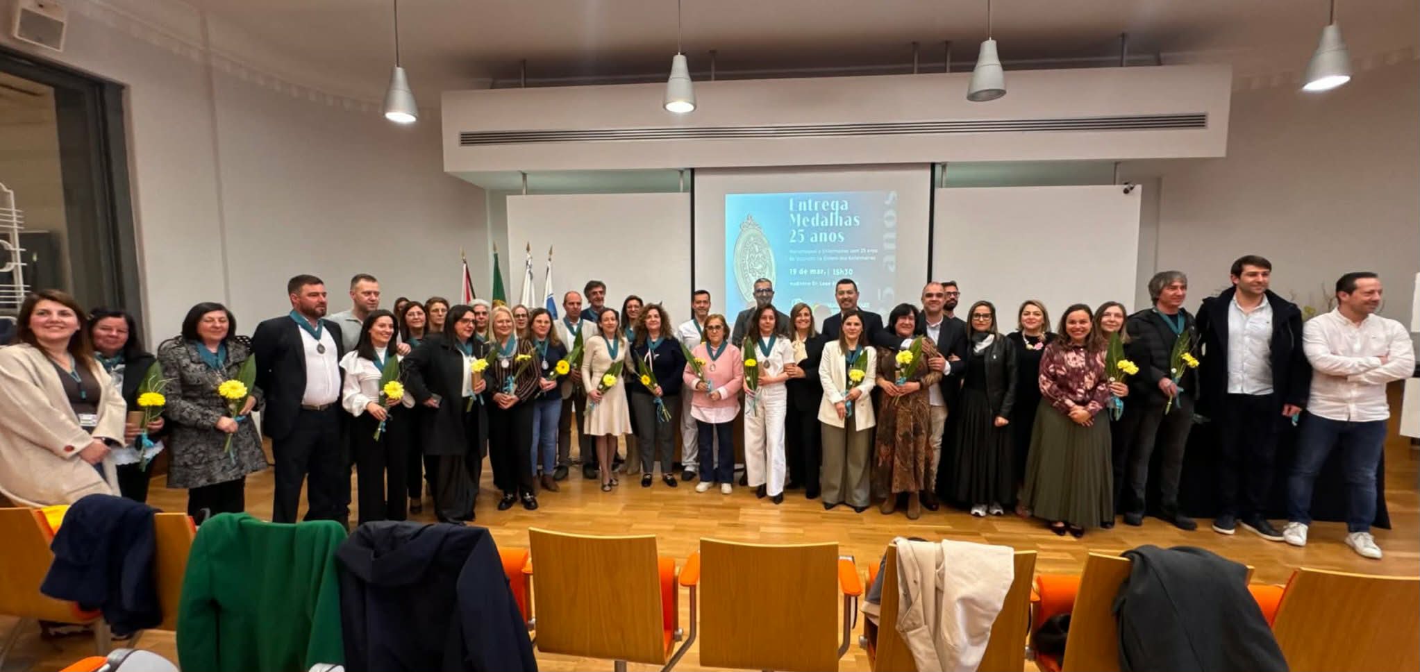 Regional do Centro da Ordem dos Enfermeiros (SRCOE), em colaboração com a Unidade Local de Saúde (ULS) da Guarda, realizou no passado dia 19 de março uma cerimónia solene no Auditório Dr. Lopo de Carvalho para homenagear os enfermeiros que completaram 25 anos de inscrição ativa na Ordem. O evento, marcado pela entrega de medalhas comemorativas, visou reconhecer publicamente a dedicação, o percurso profissional e o contributo destes profissionais para o Serviço Nacional de Saúde e para a sociedade. Segundo Valter Amorim, Presidente da Secção Regional do Centro da Ordem dos Enfermeiros, esta iniciativa surgiu de uma proposta do Bastonário para parabenizar os profissionais que acompanham a Ordem desde o seu percurso, destacou o responsável, sublinhando a importância de valorizar quem dedicou um quarto de século à profissão e à comunidade.